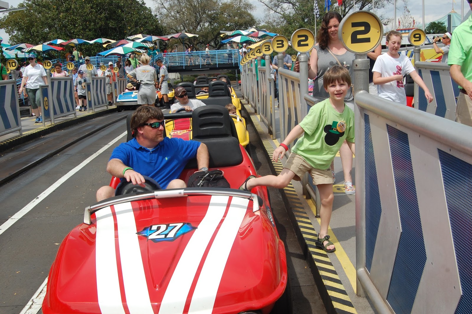 We headed to the Tomorrowland Speedway to race the cars.